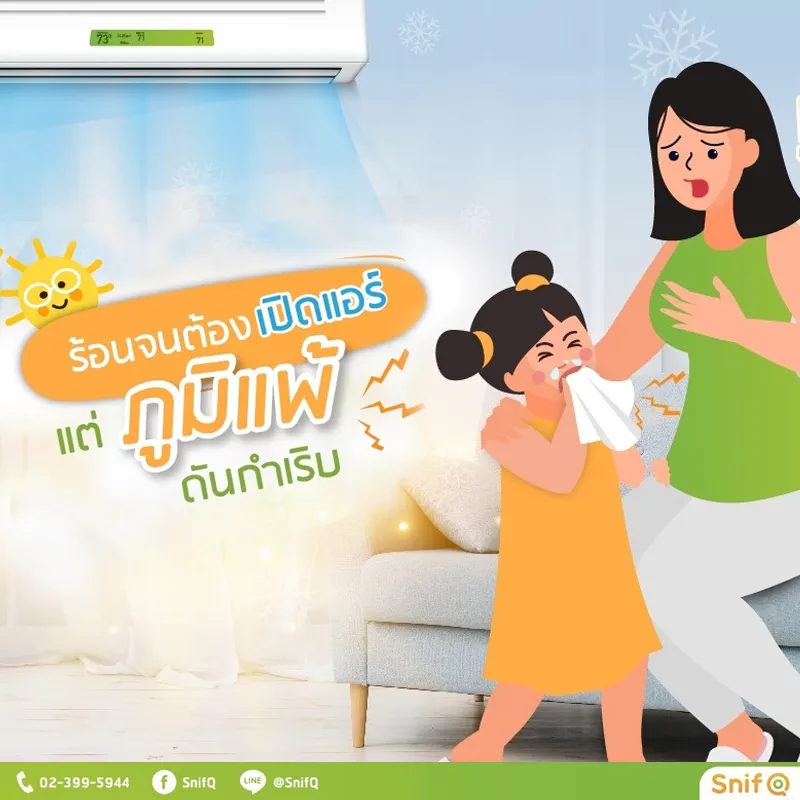 อากาศบ้านเรามันร้อนซะเหลือเกินจริงๆค่ะ การเปิดแอร์จึงเป็นคำตอบของหลายๆบ้าน แต่สำหรับบ้านไหนที่คุณลูกเป็น ภูมิแพ้อากาศ เปิดแอร์ทีไร มีอาการฟึดฟัดทุกที วันนี้สนิฟคิวจะมาช่วยไขข้อสงสัยว่า อาการเหล่านี้เกิดจากอะไร แล้วคุณแม่ควรจัดการอย่างไรเพื่อให้ลูกของคุณ ห่างไกลจากภูมิแพ้อากาศเมื่อเปิดต้องเปิดแอร์